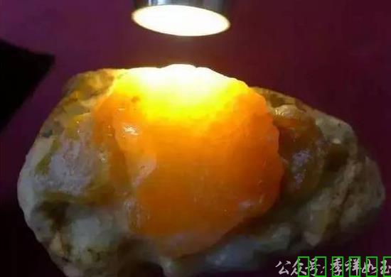 天然黄色翡翠原石色泽鲜亮均匀。黄色翡翠原石含量稀少,在地质层中仅占绿色翡翠原石的五分之一。